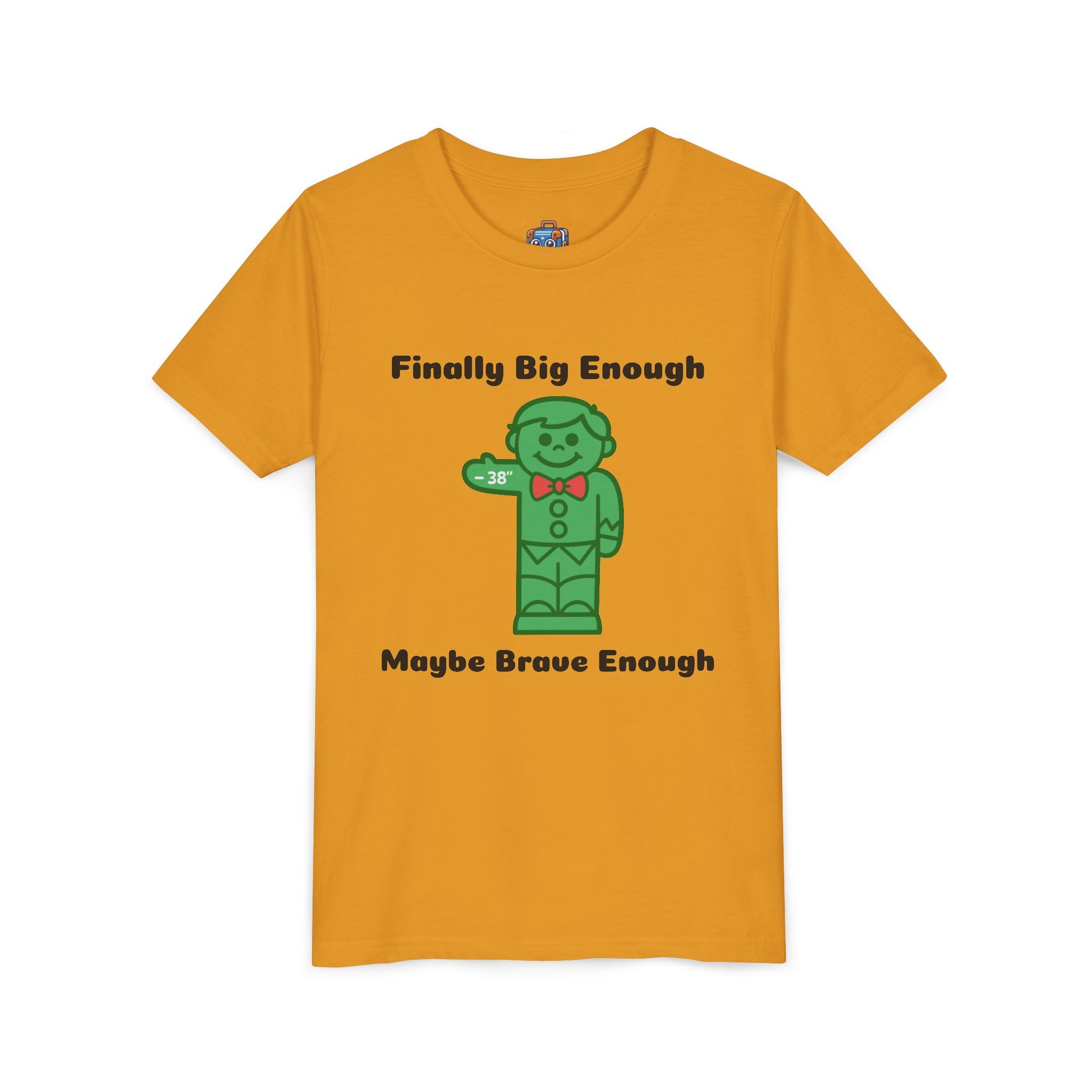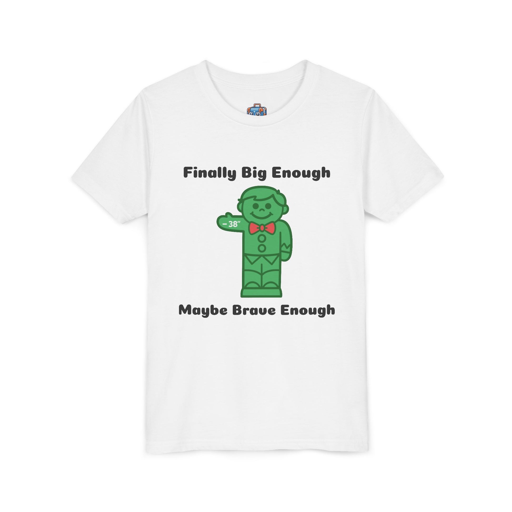 Remember the first time you stood beneath the towering coaster and felt your heart race? This youth tee captures that exact moment — equal parts nerves and bravado. The playful phrase celebrates that milestone: big enough to ride the “big kid” attractions, but still sneaking a hint of hesitation. Soft, lightweight cotton rests against the skin so kids can wear it all day — from the parking lot jitters to triumphant grins stepping off the ride. It sits neatly under a hoodie or pairs with shorts for a day at the park, and it reads like a little badge of bravery every time they glance down. The tone is cheeky and honest, for the kid who’s proud and a little unsure, and for grown-ups who love to watch that tiny, courageous moment unfold.