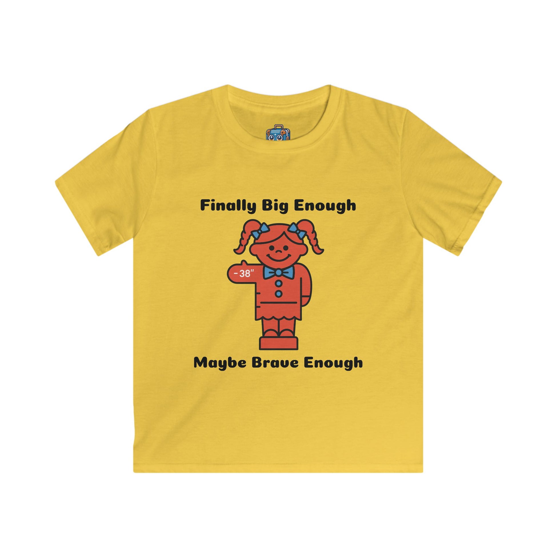 Kids Tee — "Finally Big Enough, Maybe Brave Enough" Red Doll Graphic