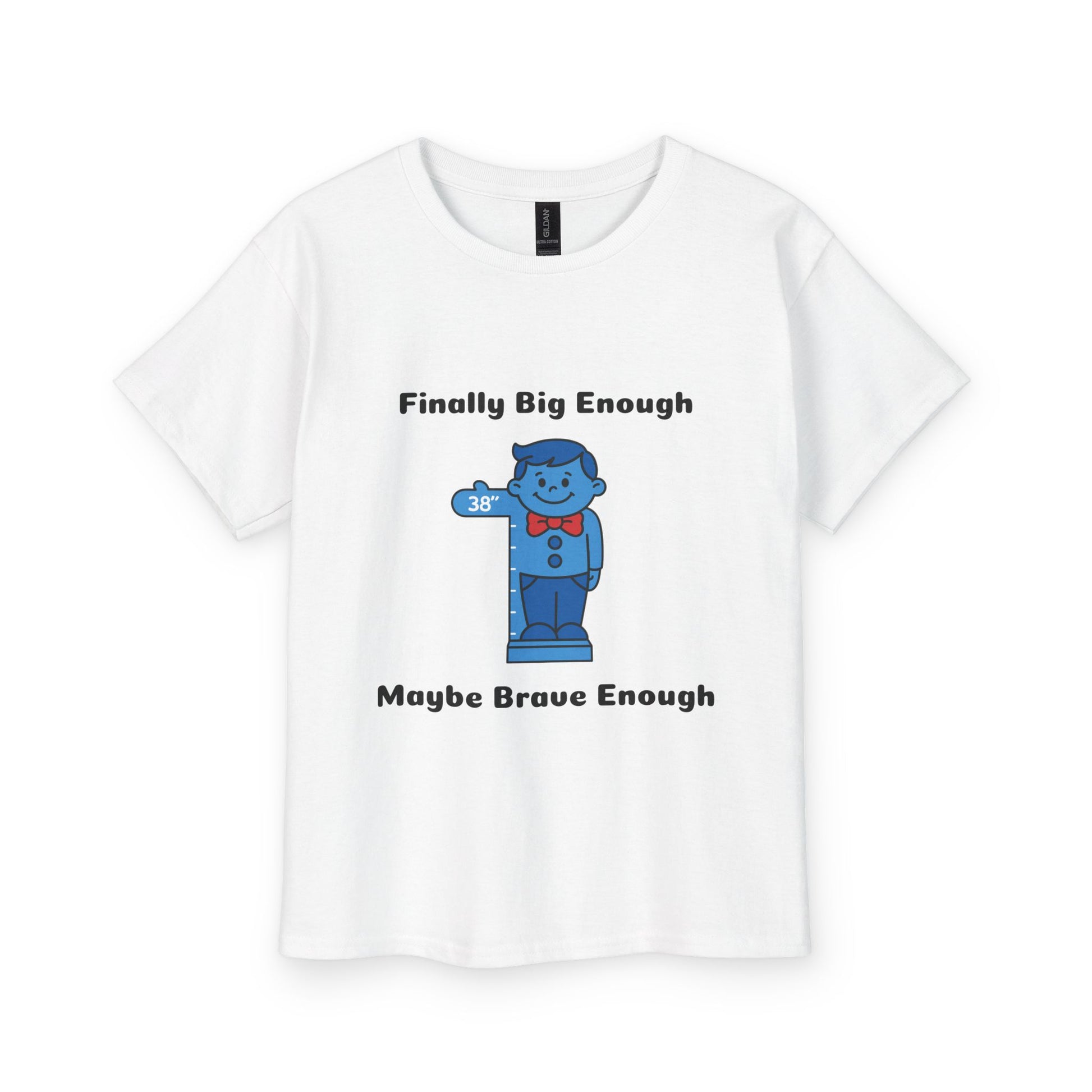 Youth T-Shirt — "Finally Big Enough, Maybe Brave Enough" Cute Blue Character Kids Tee