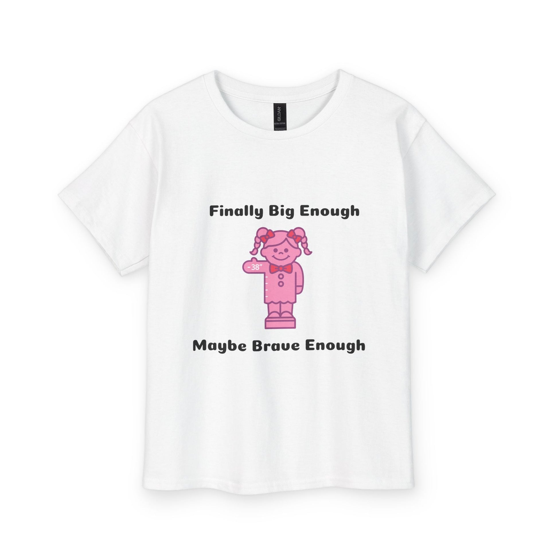Youth T-Shirt — "Finally Big Enough, Maybe Brave Enough" Pink Lego Girl Kids Tee